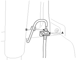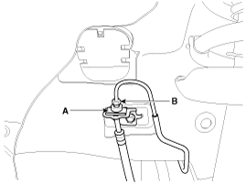 Disconnect the brake tube by loosening the tube flare nut (B).