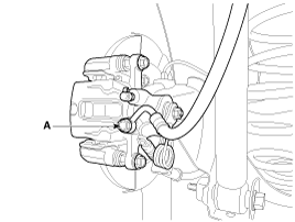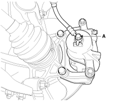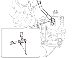 Disconnect the brake hose from the brake caliper by loosening the bolt