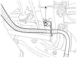 Remove the brake hose mounting bracket bolt (A).
