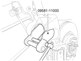 Compress the piston into the caliper body using the SST (09581-11000).