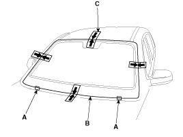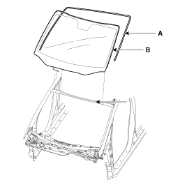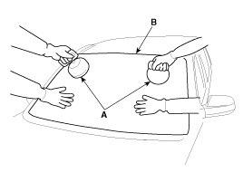 Remove the windshield glass (B) carefully using the glass holder (A).