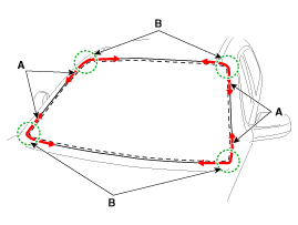 Cut off the sealant on the edge (B) while pulling the piano wire (A)