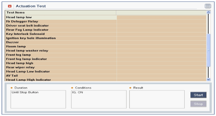To perform test on "Multifunction switch" outputs, select "Actuation