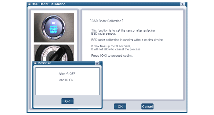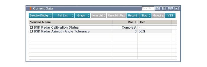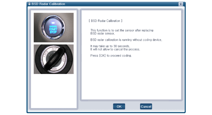 With Ignition "ON" and engine "OFF", select BSD system and "BSD Radar