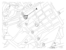 Drain the manual transaxle oil after loosening the drain plug (A).