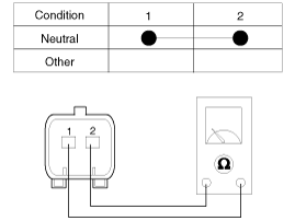 Check the continuity between no. 1 and 2 terminals of neutral position