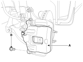 Loosen the guide rod bolt (B) and pivot the caliper (A) up out of the