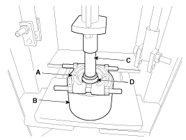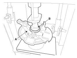 Lay the hub assembly and tool (A) upon a suitable adapter (B).