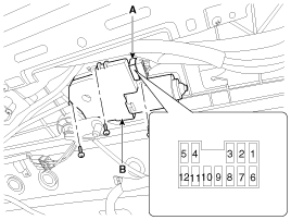 Remove the panoramaroof motor (B) after loosening 3 bolts.
