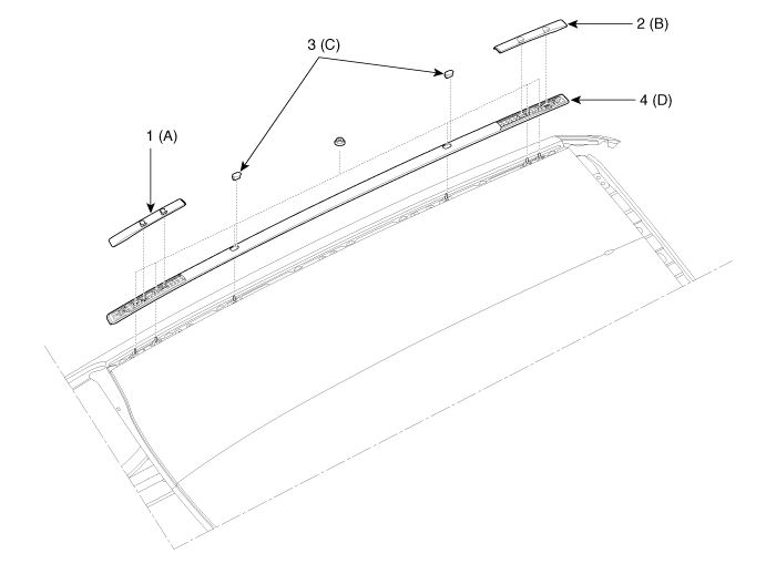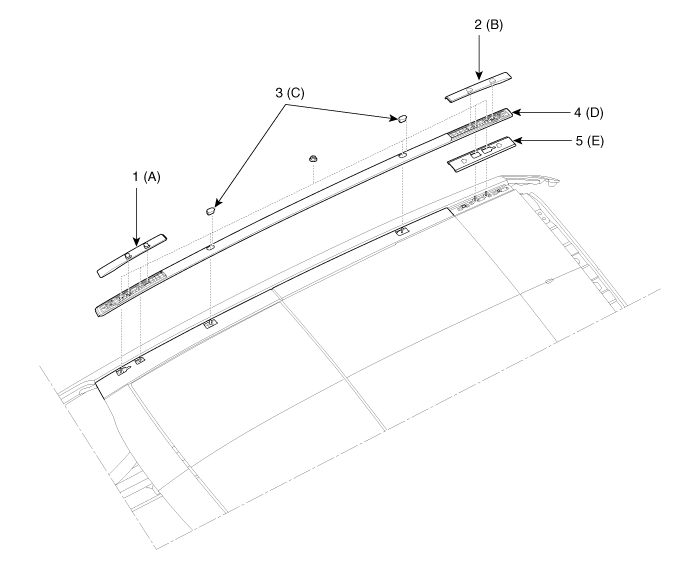 Remove the roof rack front cover (A) and roof rack rear cover (B).