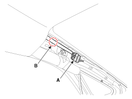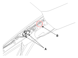 Disconnect the roof trim main connector (A) and the mounting clips (B)