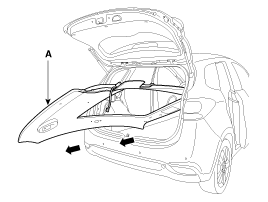 Remove the roof trim assembly (A) from the vehicle through the tail
