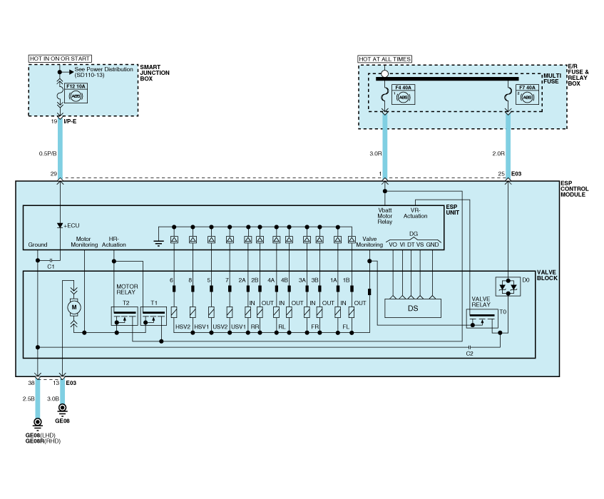 Operating voltage range: 10.0 ± 0.5V < V < 16.0 ± 0.5V Rush current : I < 110A Max current : I < 40A Max leakage current : I < 0.25mA |