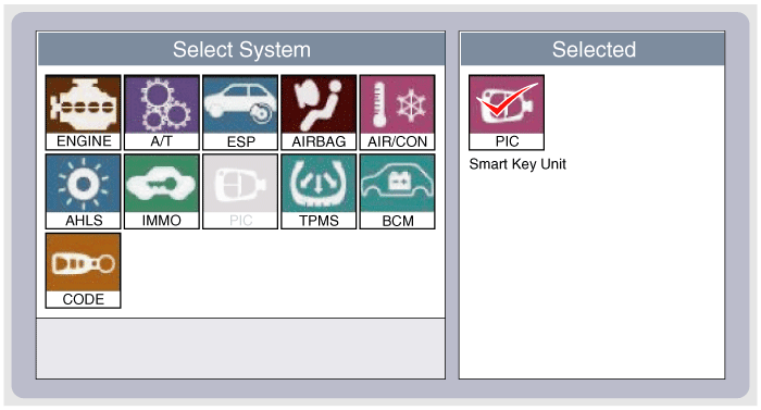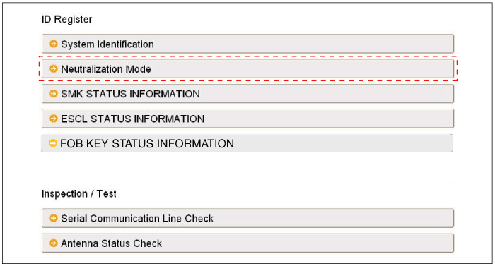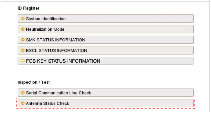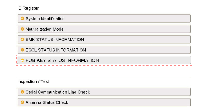 After IGN ON, select the "FOB KEY STATUS INFO".