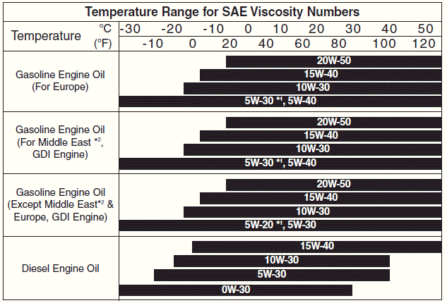 When choosing an oil, consider the range of temperature your vehicle will be operated in before the next oil change. Proceed to select the recommended oil viscosity from the chart.