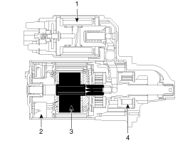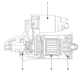 The solenoid plunger and clutch shift lever are activated, and the clutch pinion