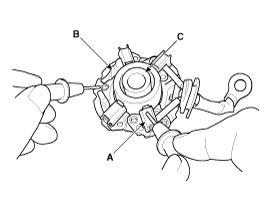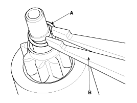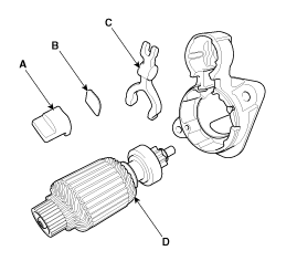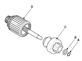 Remove the stop ring (B), stopper (A), overrunningclutch (C) and armature