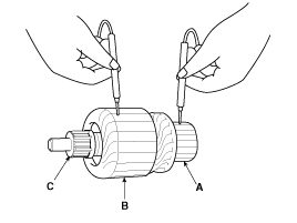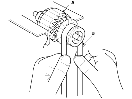 Check the commutator (A) surface. If the surface is dirty or burnt,