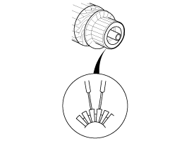 Loosen the brush holder mounting screw (A) and the trough bolts (B).