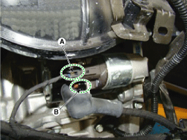 Remove the 2 bolts holding the starter, then remove the starter (A).