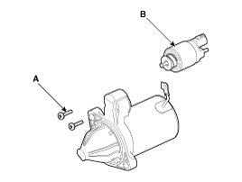 After loosening the 2 screws (A), detach the magnetswitch assembly (B).