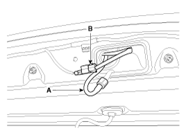 Disconnect the washer nozzle hose (A) and high mounted stop lamp connector