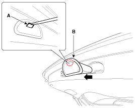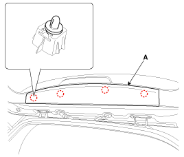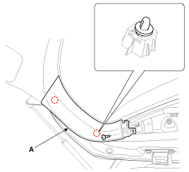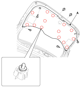 Using a screwdriver or remover, remove the tail gate upper trim (A).