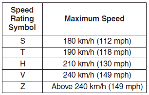The chart below lists many of the different speed ratings currently being used for passenger cars. The speed rating is part of the tire size designation on the sidewall of the tire. This symbol corresponds to that tire's designed maximum safe operating speed.