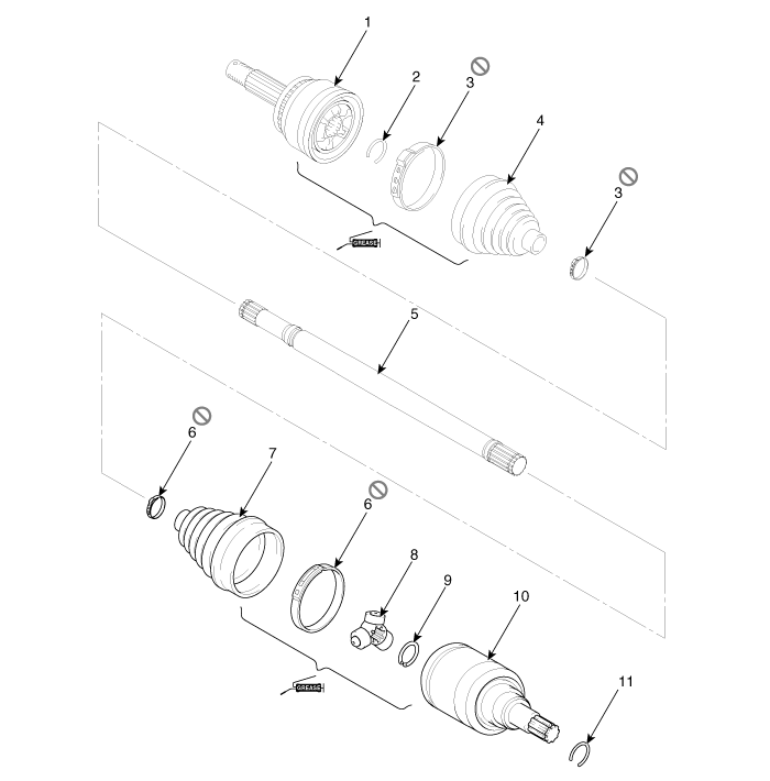 assembly 2. BJ circlip 3. BJ boot band 4. BJ boot |