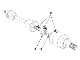 Remove the BJ circlip (B) from the TJ housing (A).