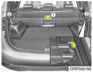 Pull out the cargo security screen with the handle in the center to prevent the guide pin from falling out of the guide.