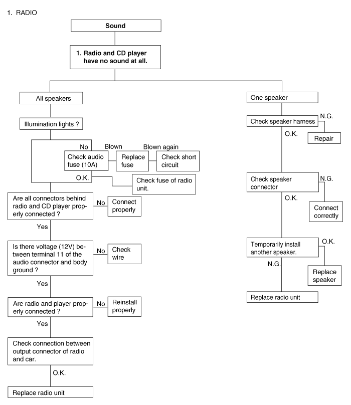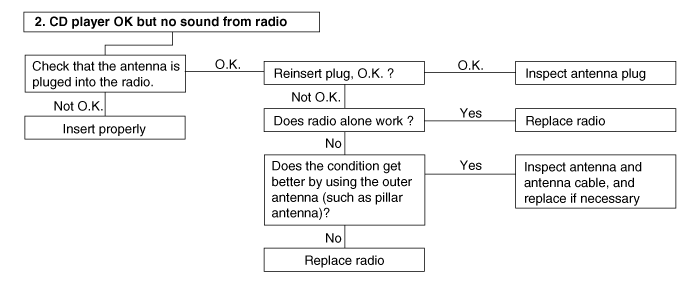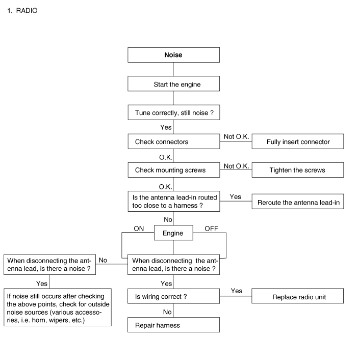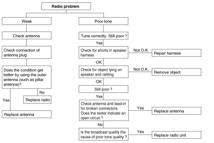 There are six areas where a problem can occur: wiring harness, the radio, the