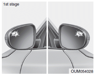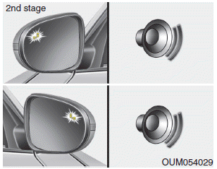 When the second stage alert is activated, a warning light will be blinking on the outside rearview mirror and an alarm will sound.