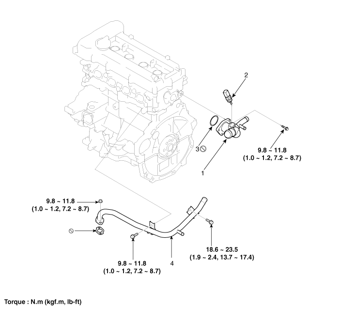 9.8 ~ 14.7 N.m (1.0 ~ 1.5 kgf.m, 7.2 ~ 10.8 lb-ft)
