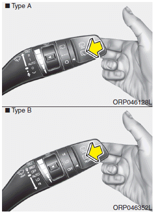 In the O (Off) position, pull the lever gently toward you to spray washer fluid