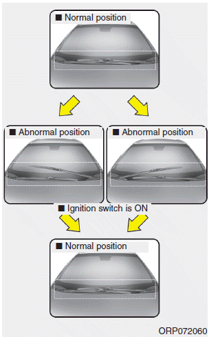 When the wiper blade is not in a normal position, place the ignition switch in the ON position. The wiper blade will return to the normal position.