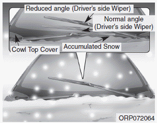 When the operation of the passenger’s side wiper blade is limited by accumulated snow on the cowl top cover, operating angle of the driver’s side wiper blade will be reduced to avoid collision between the wiper blades. Operating under a reduced angle, the driver's side blade stop position will be different.